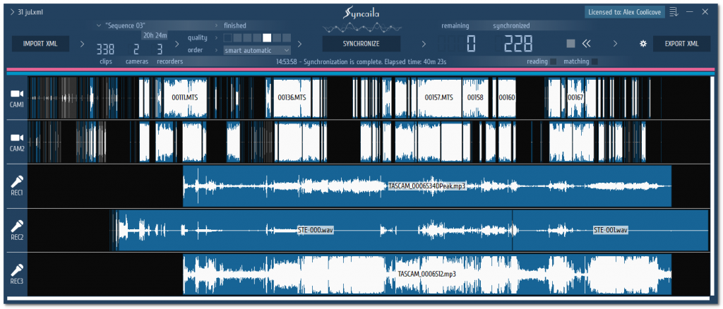 本款软件使用也是非常简单的,只需要先从视频编辑软件中导出XML文件,然后导入到Syncaila中,一键即可实现同步,同步完成后我们再从Syncaila导出XML文件回批到视频编辑软件即可;